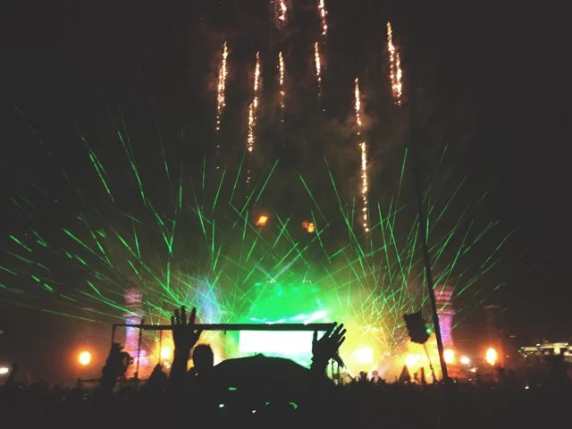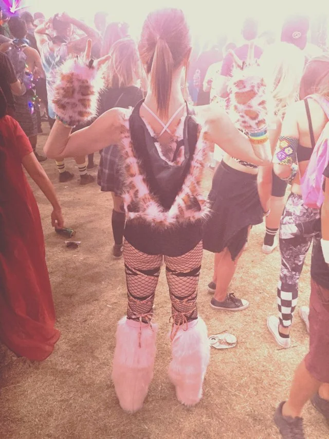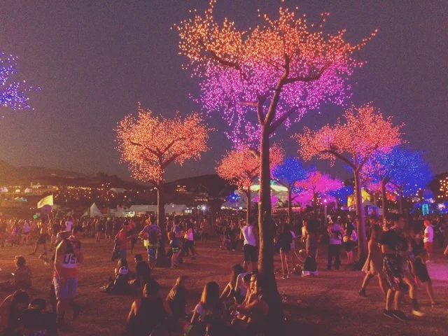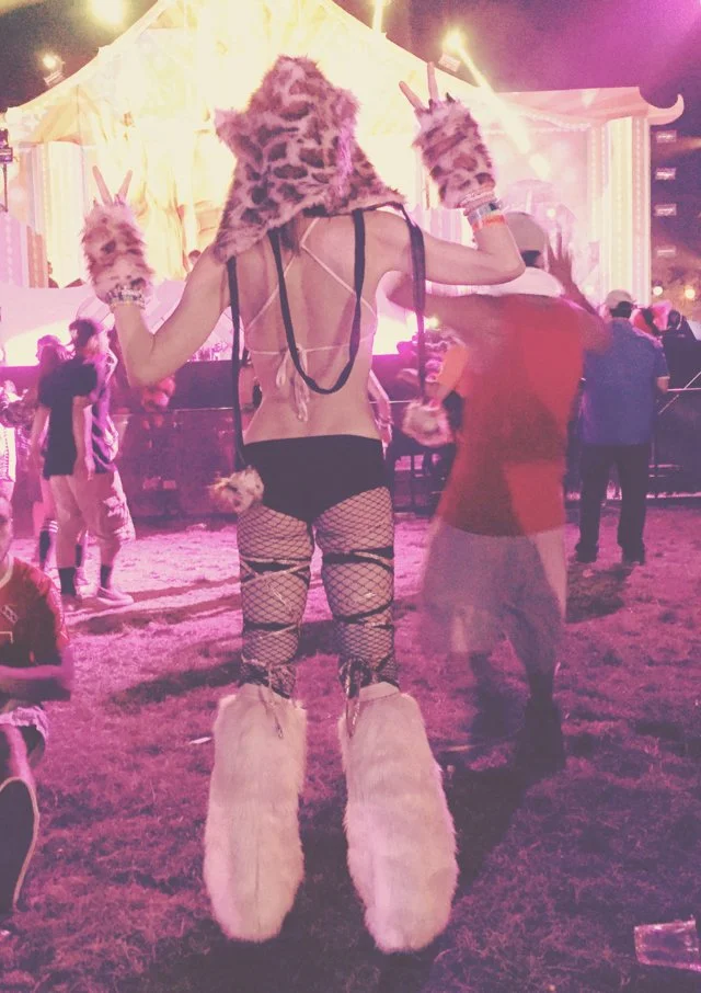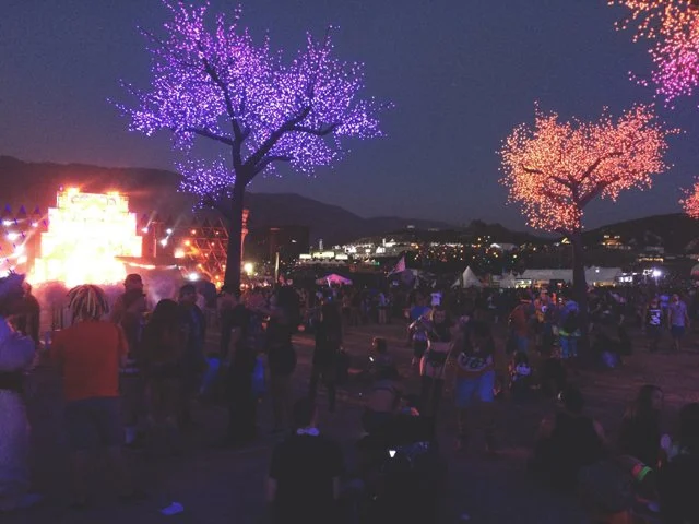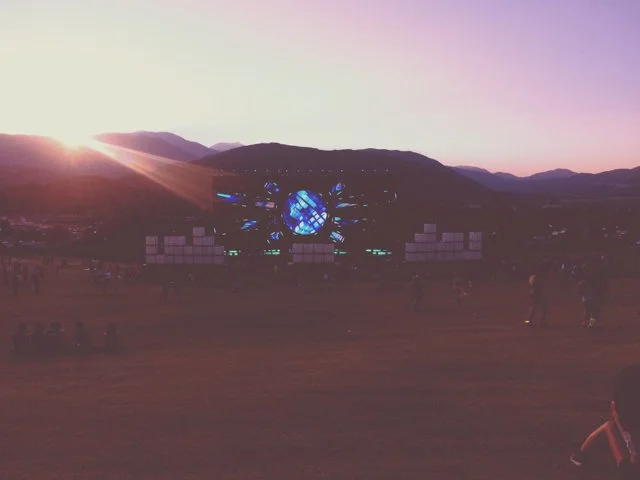 Sunset. Kaskade, on the main stage. How many tens of thousands coming to watch, I don't know. But they're running, it seems like they are all running. Even those already here are swept up in the excitement: the opening blasts of bass, of bouncing lights it's finally dim enough to appreciate. Jockeying to get closer, to get in the mix, in the thick of it. Twirling and jumping on one another's shoulders, you've never seen so many people so intoxicated by music, by their own existence. Two girls in flower headbands cross arms and spin like children, throwing their heads back and laughing with abandon. The grounds and everything on them are saturated in the last bits of sunlight, all that is brightly colored turned pastel in the haze. It's the in-betweenland of dusk, where flashes of neon start to emerge, to blaze and catch your eye. I dodge through the chaos to find my own sweet spot. Close enough but not too close. And then, for a little bit, I become part of the chaos.