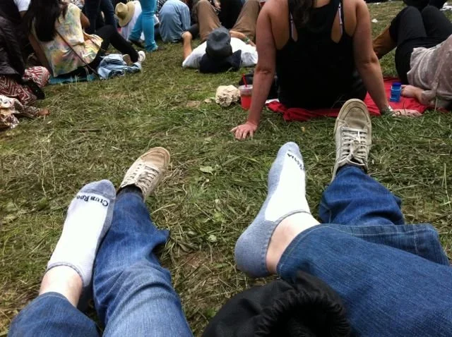 1. Laying on the grass, on our ridiculous whale sheet, in the middle of the festival grounds at 1:00 am, on a perfect, lovely roll, holding one another, eyes closed in the dark and cold, hearing the strains of music around us, feeling cozily tucked in amongst the thousands of blissed-out people, but special and separate at the same time, kissing for several minutes straight without breaking contact. Now when I ask him for a "Bonnaroo kiss", he knows exactly what I mean.