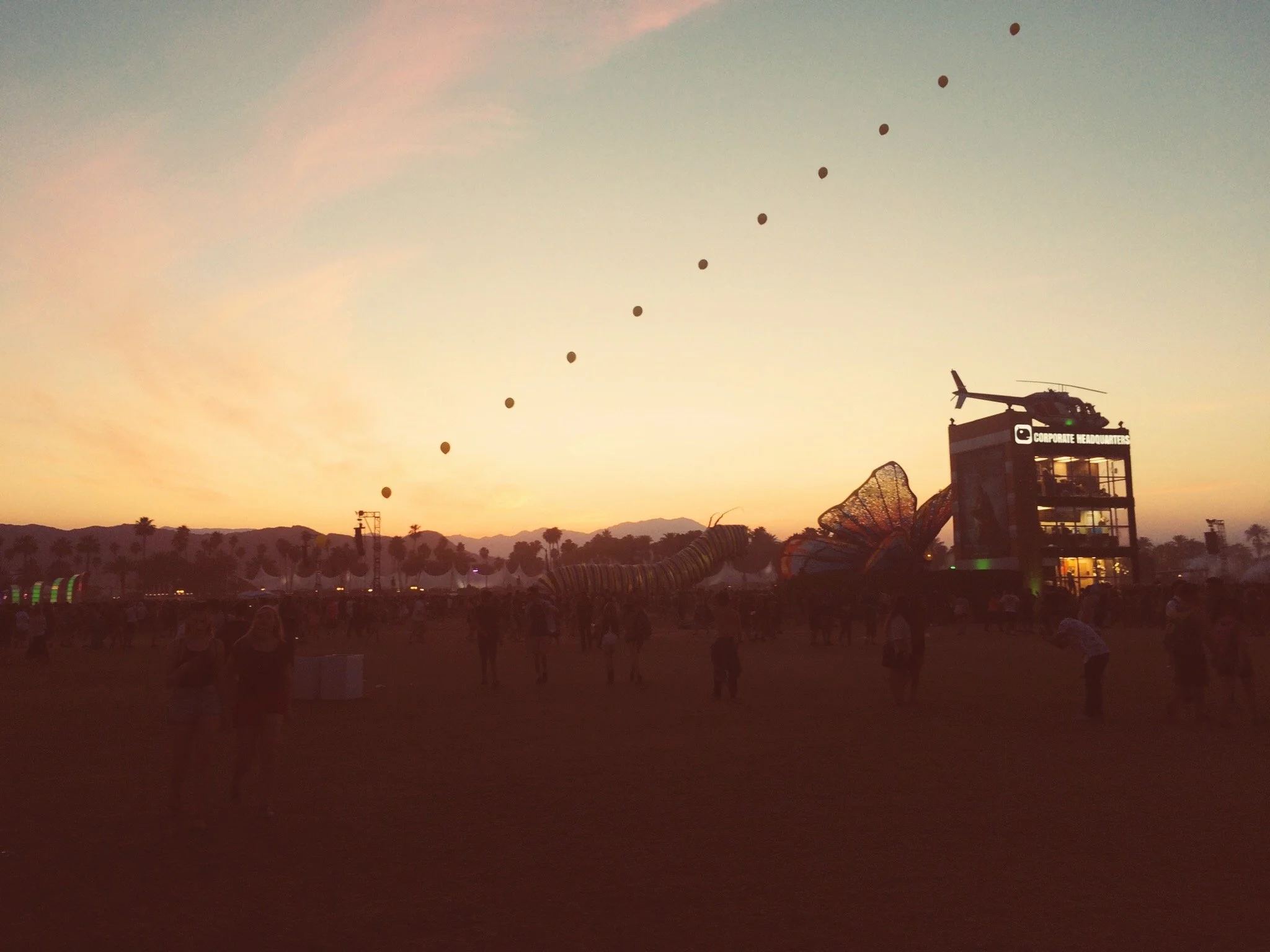 16. Watching a paper lantern being lit and launched, a few feet away from us, at Red Hot Chili Peppers (the cheers from the crowd are deafening each time one is successfully set afloat in the night sky—we see dozens over the weekend). When it dips back down into the crowd, threatening to crash, a woman catches it and gives it the push it needs to get skyward again. The crowd roars with approval and excitement.