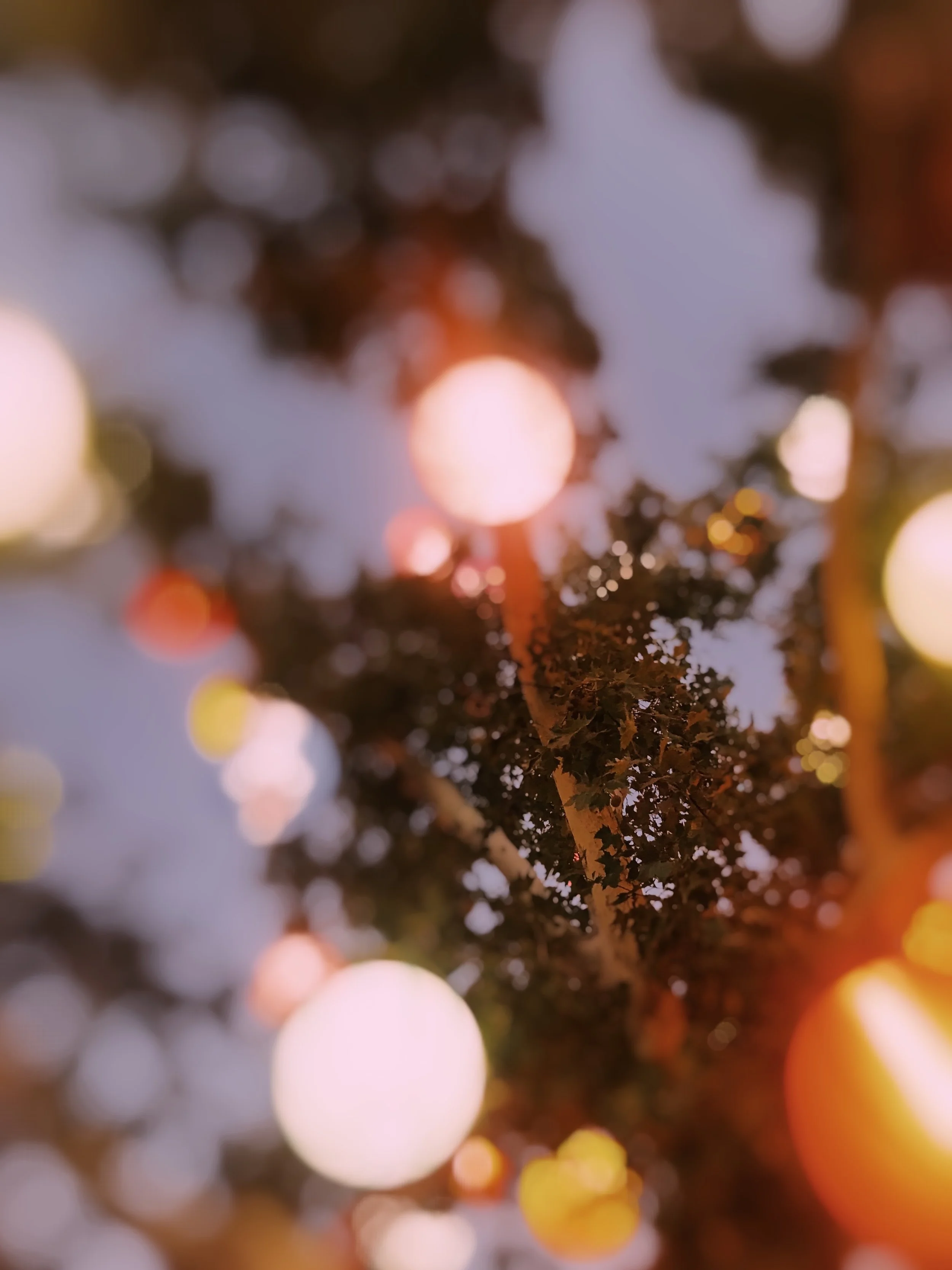 18. Sunday night, stopping randomly at a small stage, headlined by some band we've never heard. Less than a hundred people are watching, but the twangy country sound fits our mood. We dance beside a small canopy with stringed lights woven in its branches, oblivious to how we look to anyone but each other. We cross arms, grab hands, and spin, and I take one of the most vivid mental snapshots of my life: my boyfriend's laughing face, the lights and trees blurring behind him, and beyond that, paper lanterns aglow and adrift in the sky.