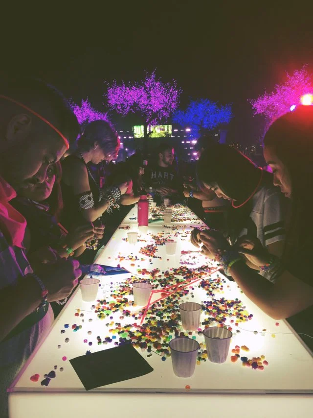 The crowd was wonderfully chill and friendly. Similar to Bonnaroo, but even better, more social energy. And really respectful of one another. Several people approached me to ask about where I'd gotten my hood and gloves, to dance, or to just trade kandi. I loved this whole back section behind the Labyrinth stage where people spread out under the electric trees to watch and talk and dance. You can see how much room there was to move around.