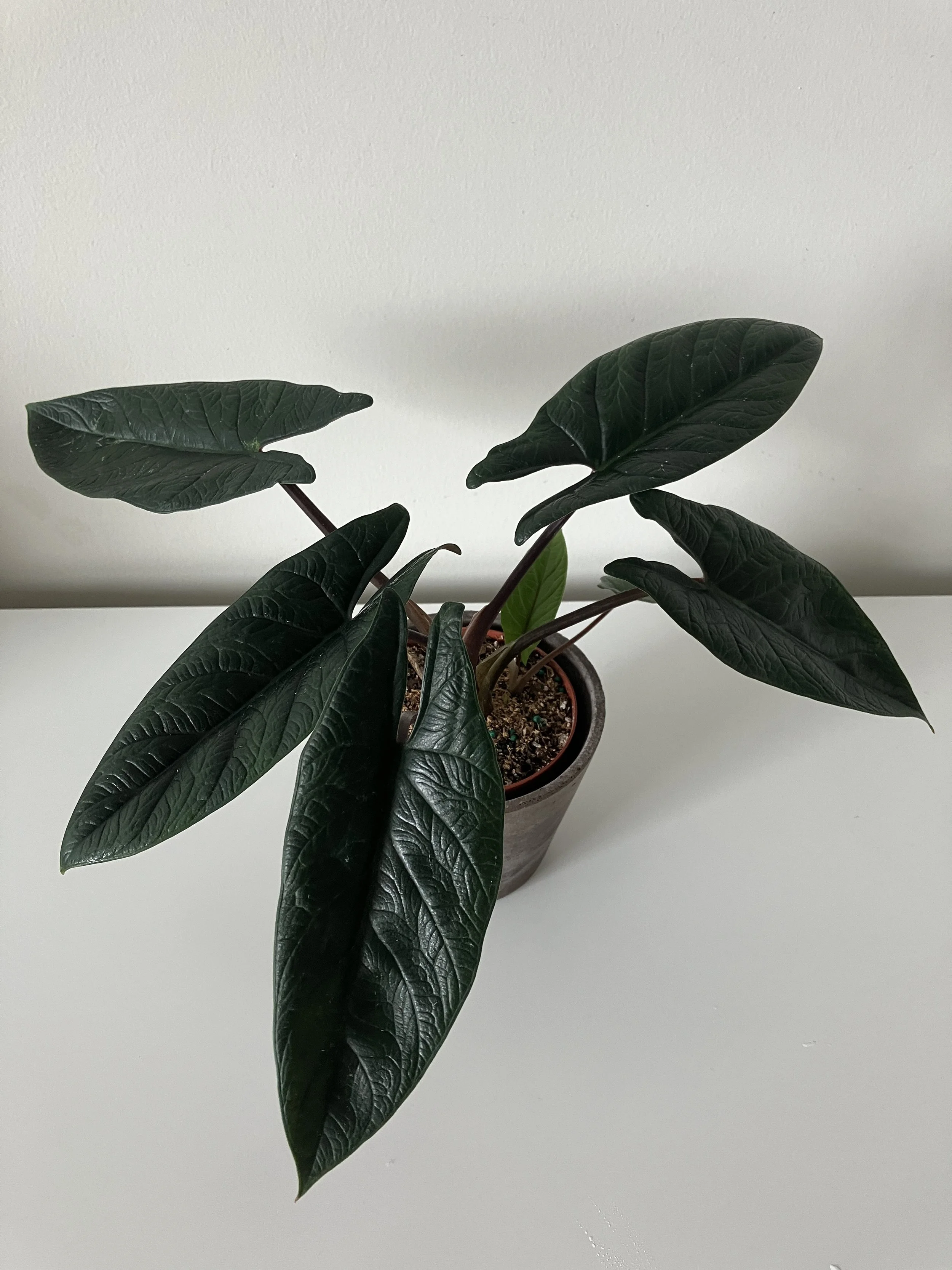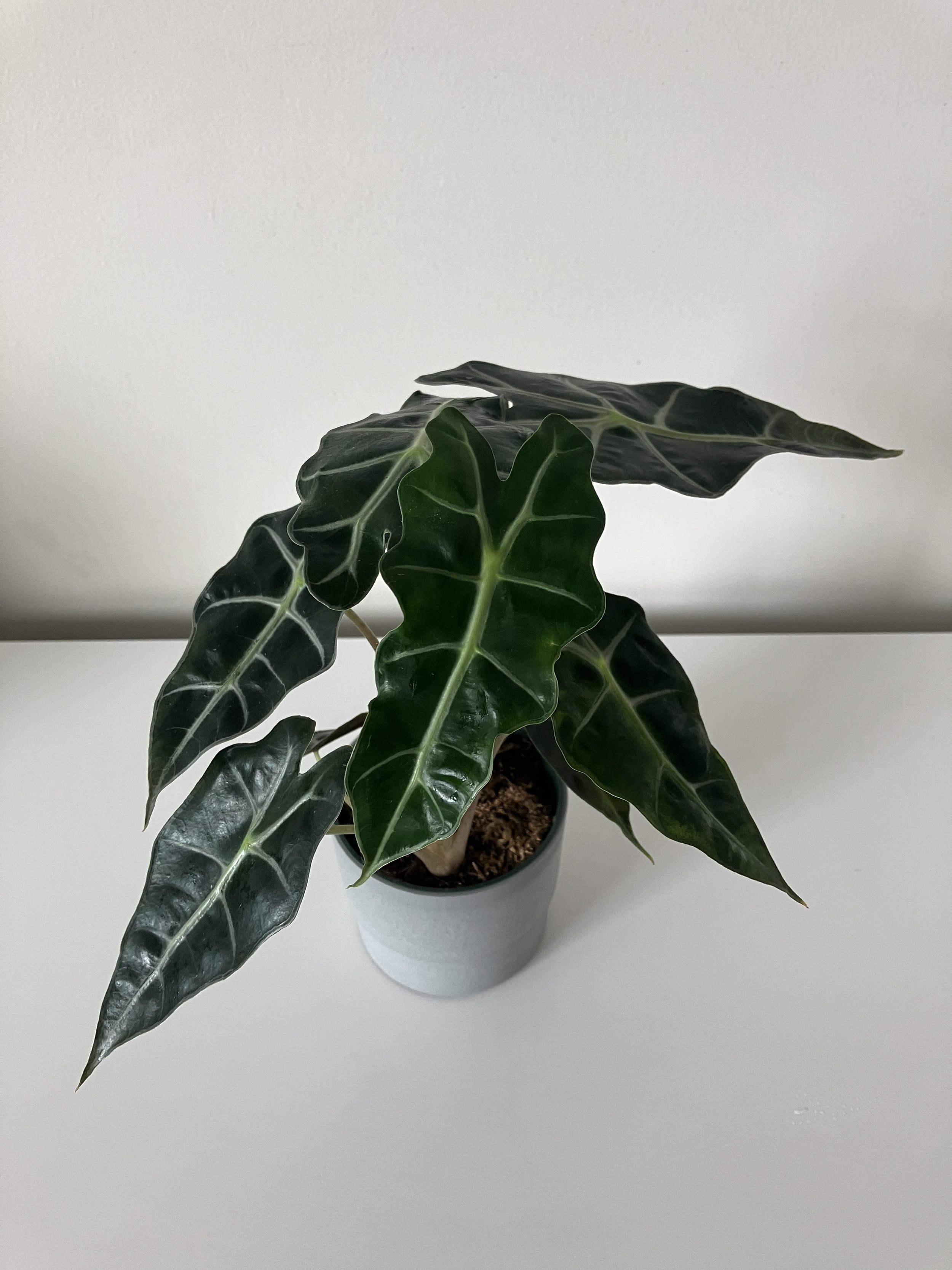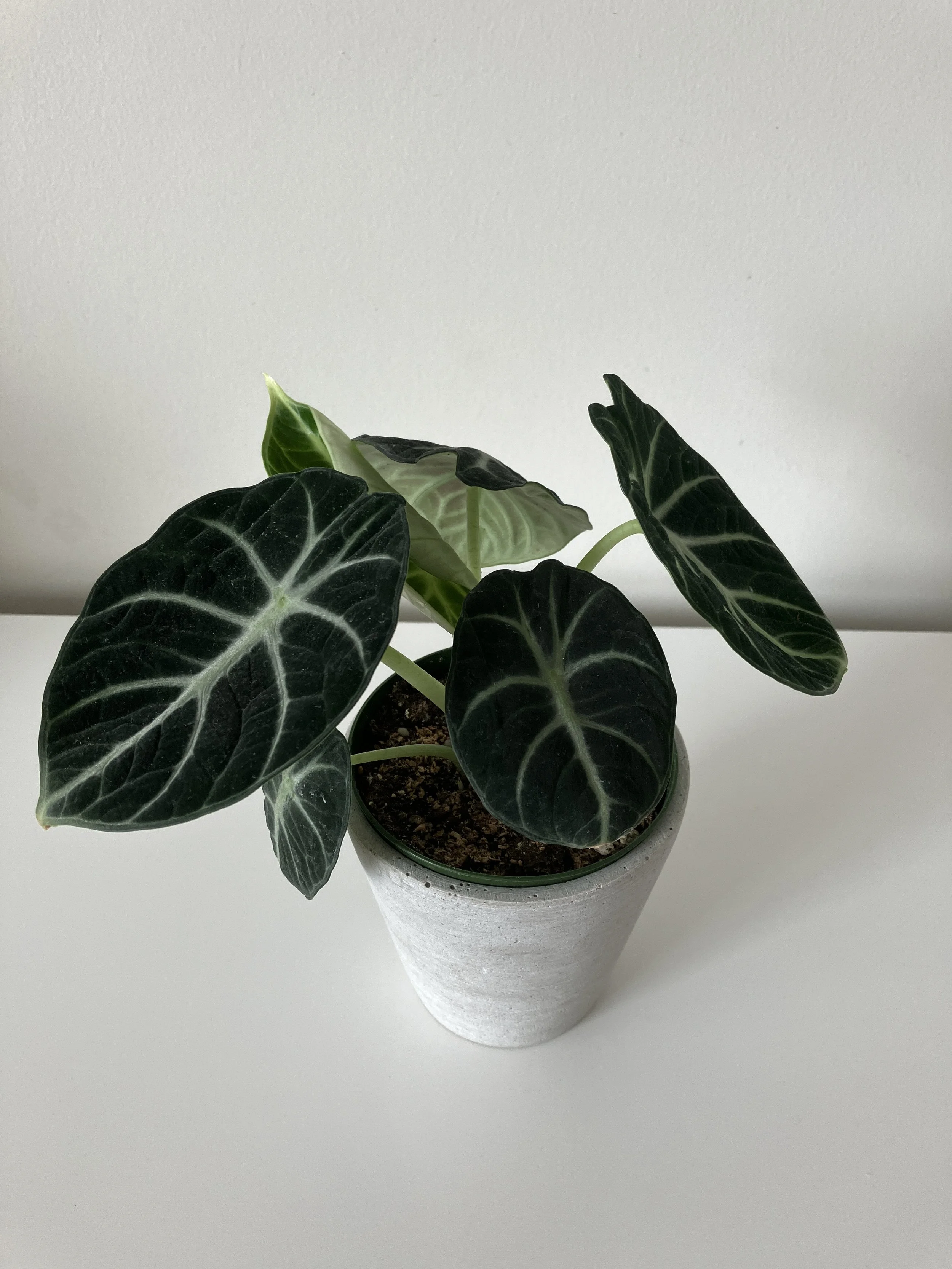 I slowly expanded my collection, getting braver and braver about my Home Depot selections until one day I went into an actual plant shop. It was there I saw my first alocasia—a nebula in a six-inch pot. I was instantly in love, and it’s been alocasia central around here ever since.