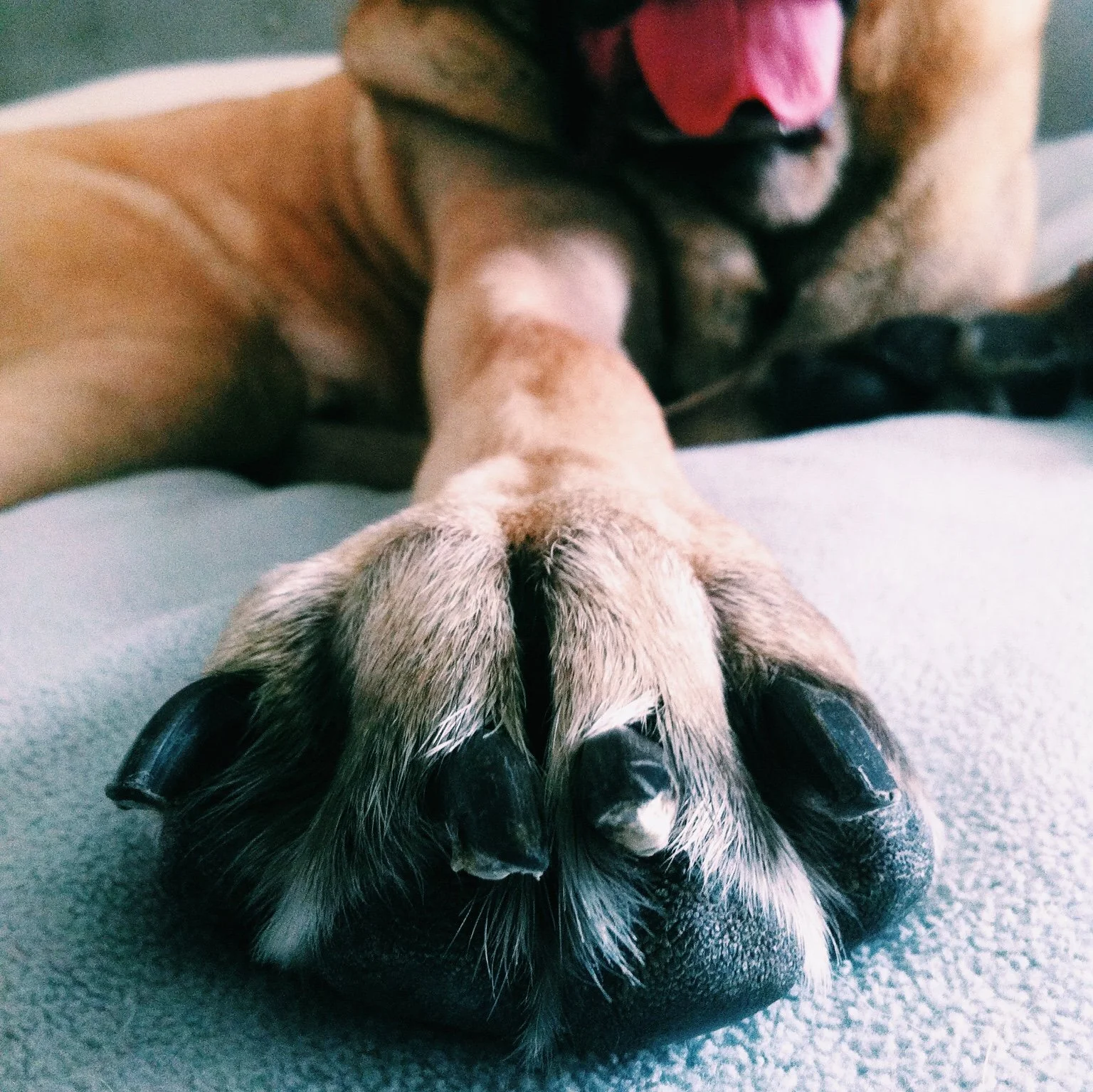 Back at home I wipe his paws with a warm washcloth, rubbing one toe at a time while he lays on his side. White tile is unforgiving, and if we don't take a minute to clean him off after each walk the floors are a wreck almost immediately. Sometimes it's a pain, especially when I'm in a hurry. But mostly I don't mind. Him neither, I think.