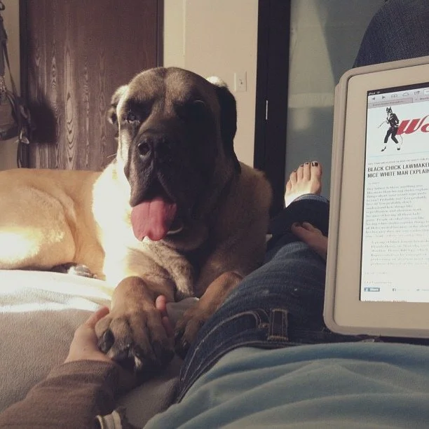 Your size is never a problem - only a bonus. You're tall enough that in the morning, you can press your face into the bed near mine, wagging your tail when I smile and say good morning. Then, kisses. And yawns - you've learned to yawn loudly because it makes me laugh. Beside me on the sidewalk, I don't even have to stoop to stroke your back or finger your velvety ears. You're a sure, solid weight next to me as we walk. Sometimes when I'm feeling overwhelmed with happiness and optimism, I'll shut my eyes and tilt my head back to feel the sun, the breeze on my face. I keep my eyes closed for a few moments, knowing you'll keep leading us straight.