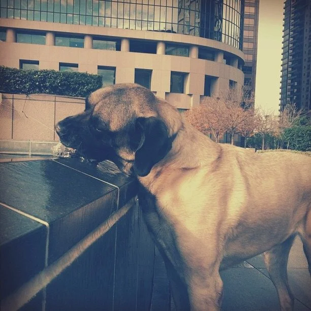 Let's start with what a pleasure it is to walk you. You trot along beside me, and you only pull when you see a familiar face that you want to greet. The leash hangs slack between us, a wordless agreement to move at a comfortable, companionable pace. People are amazed at how good a walker you are - other dog owners, jealous. Even if you're in a mood to sniff every goddamn tree, you respond to my slightest correction, and settle in by my side, content just to be out and about. At night, when the streets are empty, I unclip you, and we sprint together down the sidewalk, you bursting with energy and joy in the cold night air. But you always stay close, and I never have to worry about you running off, or away. I take you everywhere I possibly can: coffee shops, the cleaner's, the tailor's, the salon, late night pizza runs. I even sneak you into the very edge of Grand Central Market, so I can get juice for our walks.