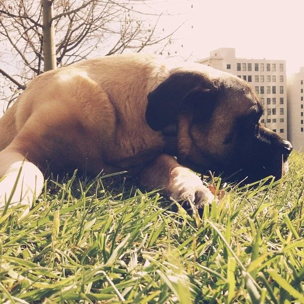 You've accepted the major changes in your life with grace and even, it seems, gratitude. Suburb to city. House to apartment. Yard to sidewalk. Smaller and smaller abodes each time. And yet you've remained sweet-natured, playful, well-adjusted. You let me know when you need some attention - a few minutes of tug-o-war, or a good long walk and some socialization. You've adjusted to loft life beautifully. You've made friends. You have play dates. You're a recognizable fixture in our neighborhood.